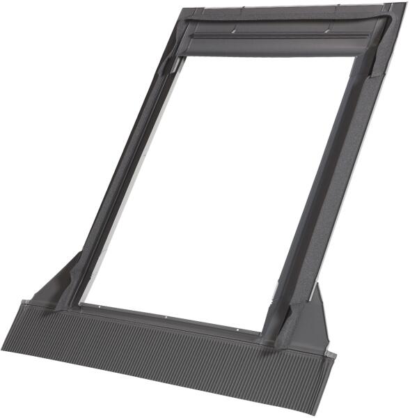 Univerzális burkolókeret extra hosszúságú köténnyel felszerelve, amely biztosítja a pontos zárást a magas profilmagasságú tetőfedő anyagok esetében is. A burkolókeret tökéletes vízzárást biztosít télen-nyáron.